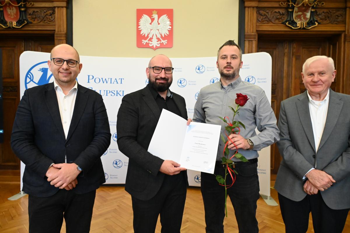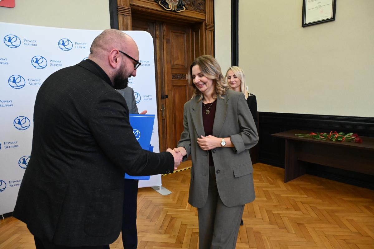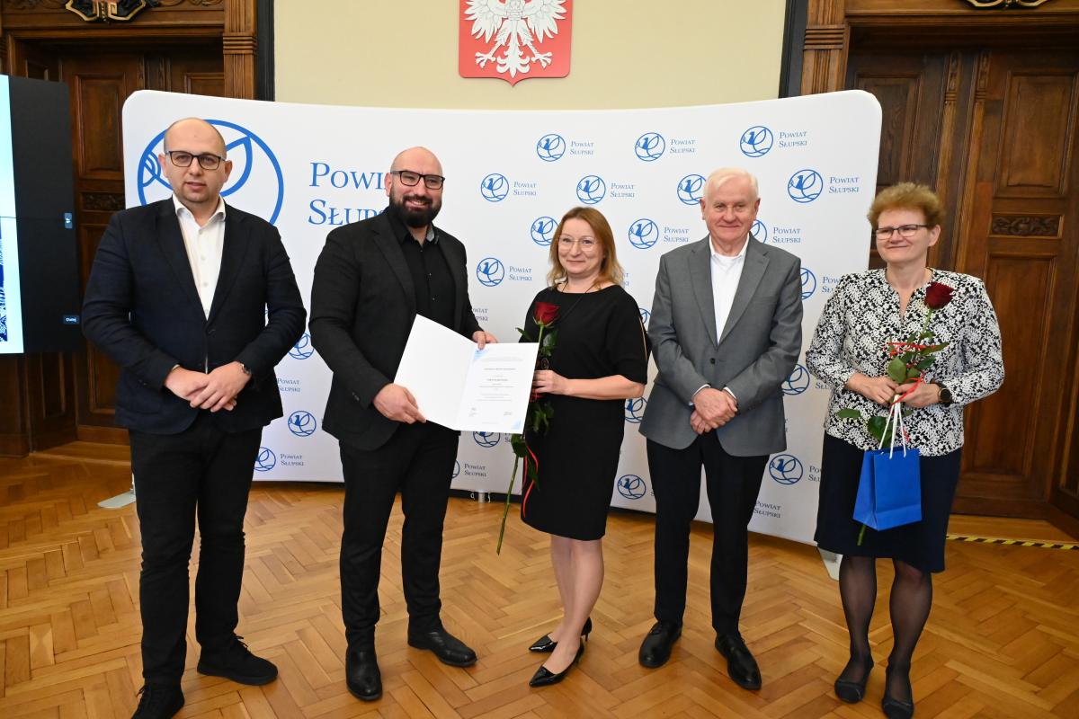 Z okazji Dnia Edukacji Narodowej starosta Paweł Lisowski wraz z wicestarostą Marcinem Kowalczykiem, członkiem Zarządu Powiatu Słupskiego Wiesławem Kamińskim i dyrektor Centrum Usług Wspólnych Powiatu Słupskiego Anettą Pirką wręczyli dyrektorom i nauczycielom pracującym w szkołach i placówkach oświatowych prowadzonych przez samorząd Powiatu Słupskiego nagrody za szczególne osiągnięcia w pracy dydaktyczno-wychowawczej z dziećmi i młodzieżą z terenu powiatu. Spotkanie było okazją do złożenia podziękowań za codzienny trud, pasję i zaangażowanie w wychowanie oraz kształcenie młodego pokolenia.