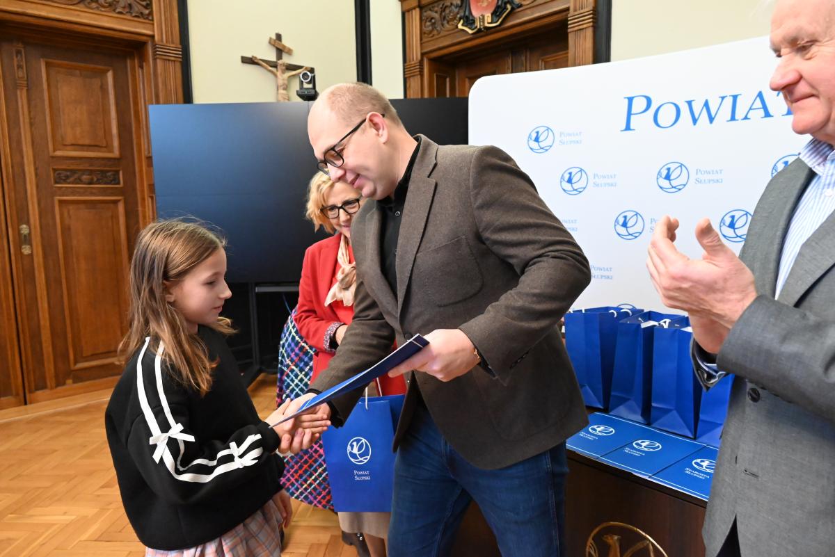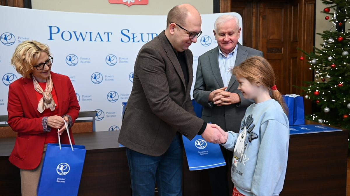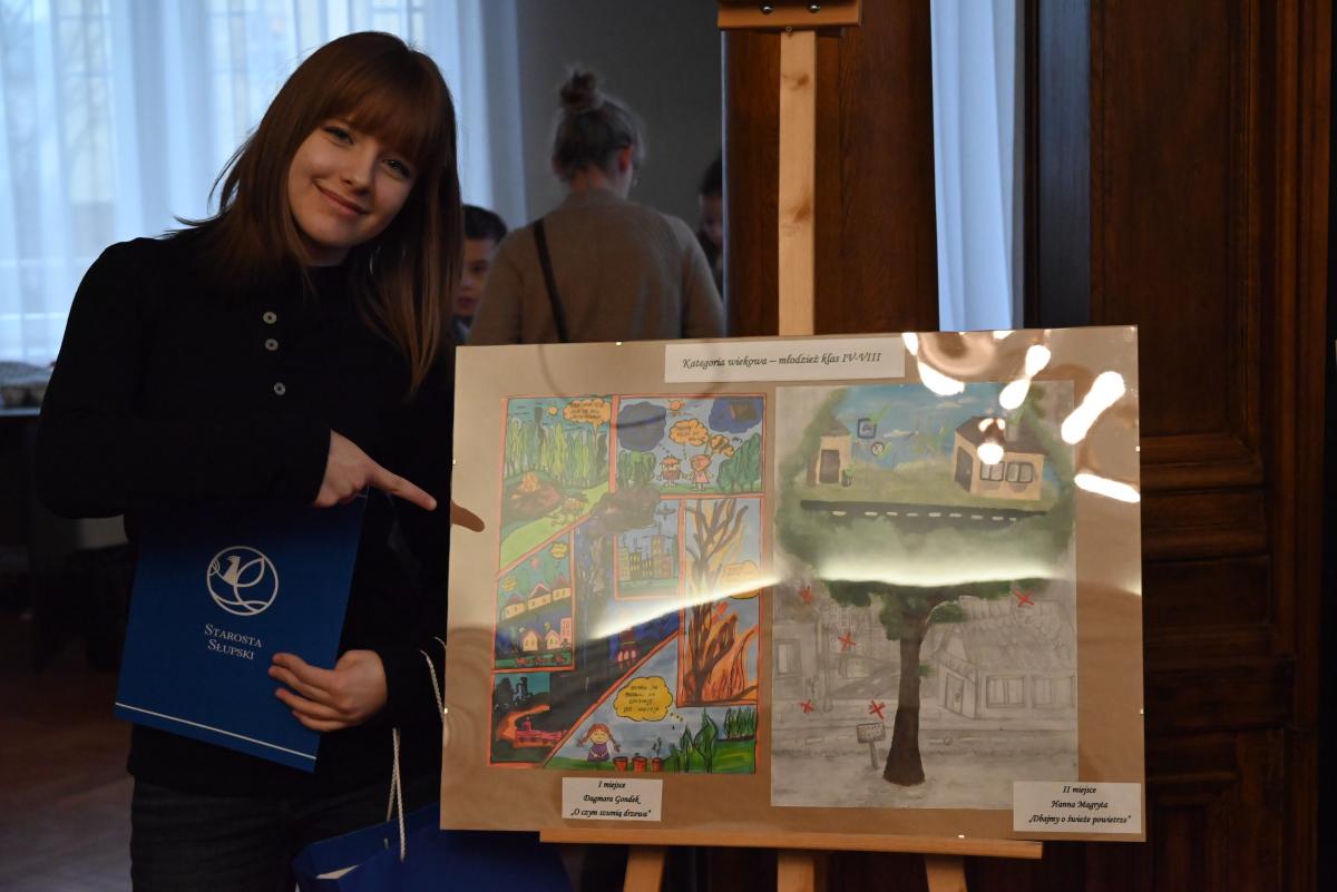 W Starostwie Powiatowym odbyło się uroczyste wręczenie nagród laureatom Powiatowego Konkursu Plastycznego „Dbam o czyste powietrze”. Konkurs pokazał, jak ważny dla młodych mieszkańców powiatu jest temat ochrony środowiska i jakości powietrza. Talentu i kreatywności pogratulowali oraz nagrody wręczyli: wicestarosta słupski Marcin Kowalczyk, Członek Zarządu Powiatu Wiesław Kamiński oraz Sekretarz Powiatu Iwona Wójcik.